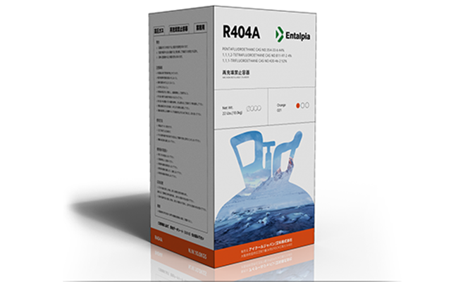 R-404A(HFC-404A)は低·中温度域に対する業務用冷凍機器に使用されているR-502(HCFC-502)及びR-22(HCFC-22)の代替冷媒として開発されたR-125 (HFC-125)、R-134A(HFC-134A)、R-143A(HFC-143A)の3成分からなる擬似共沸混合冷媒で、ショーケース、保冷車、製氷機などの冷媒として優れた特性を有しています。
